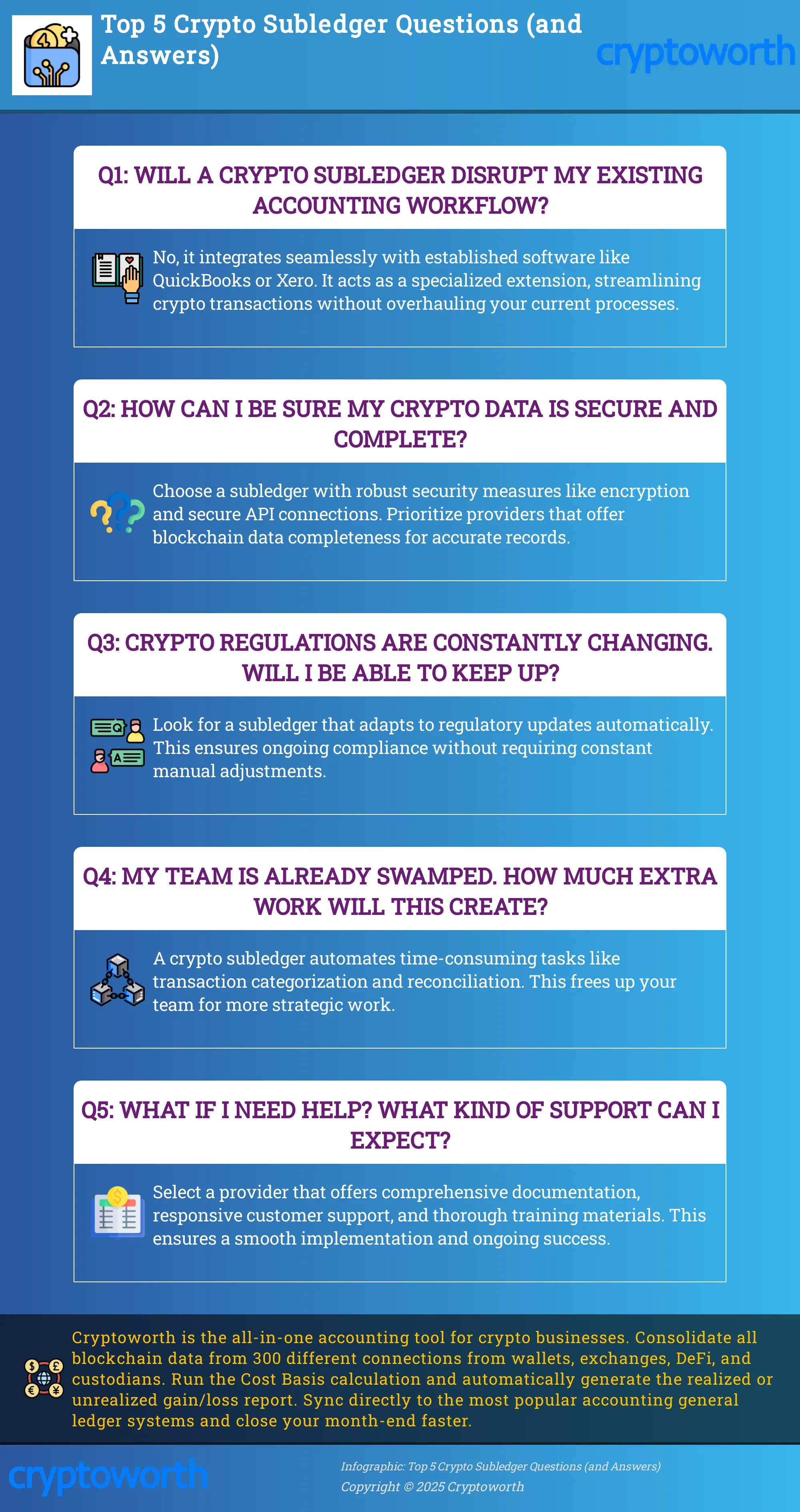 Reliable customer support and comprehensive training are important. Look for providers that offer clear documentation, responsive support teams, and helpful training materials. A deep understanding of blockchain technology is crucial for accurate crypto accounting. Your subledger provider should be equipped to handle the technical complexities of blockchain data. This expertise ensures data completeness and accuracy in your financial records. Cryptoworth™ offers resources to help you understand data completeness in crypto subledgers.